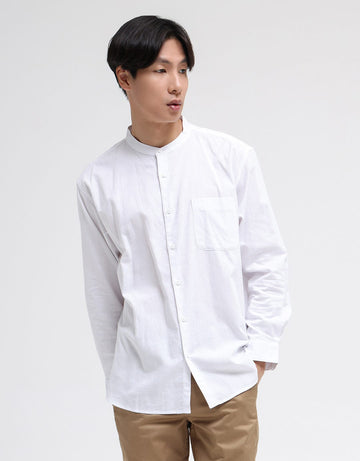 Suko Mandarin Collar Linen Sheer Kerah Tegak Kemeja Pria