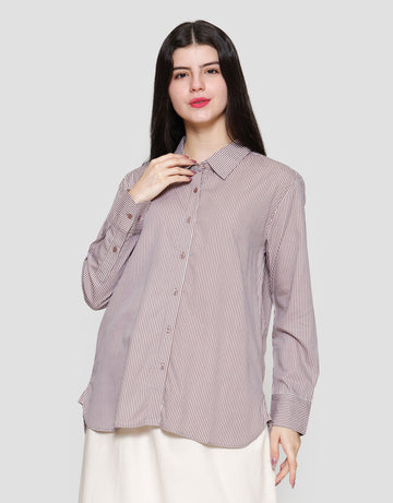 Connexion Basic Print Stripe Kemeja Lengan Wanita