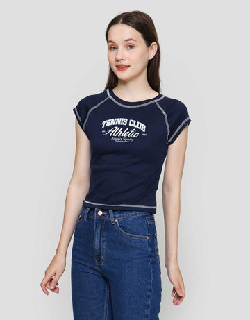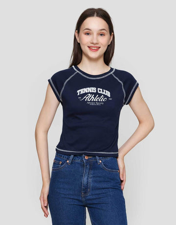 Nevada Solid Rib Overlock Tenis Club Kaos Lengan Pendek Wanita