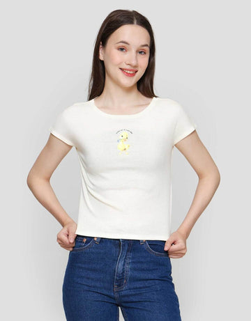 Nevada Solid Rib Cute Duck Kaos Lengan Pendek Wanita