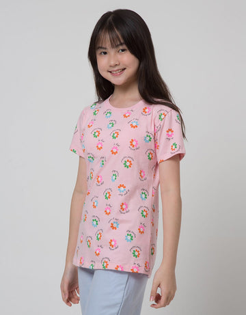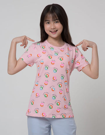 Aero Short Sleeve T-Shirt Print Bunga Smile Word
