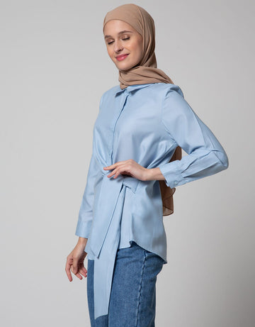 Annisa Kemeja Lengan Panjang Textured Basic With Belt Wanita