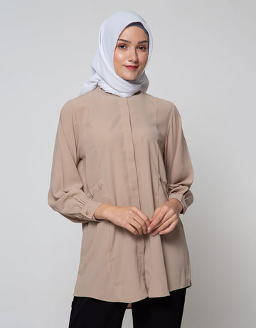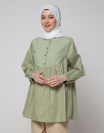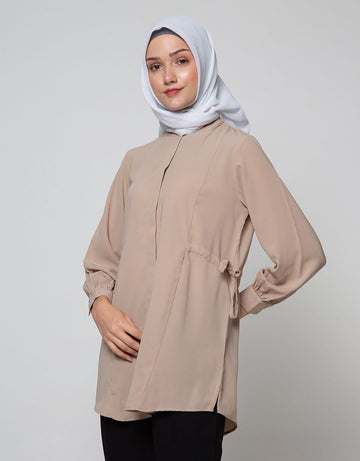 Annisa Long Sleeve Blouse Plain With Smok On Waist And Sleeve Hem