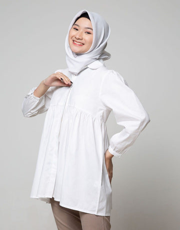 Annisa Long Sleeve Blouse Loose Fit Poplin Shirt With Gather