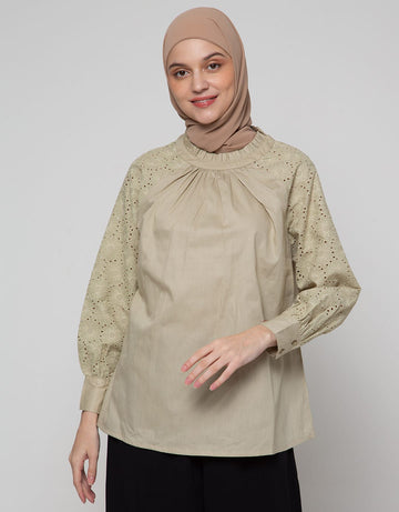 Annisa Long Sleeve Blouse Plain With Eyelet Arms