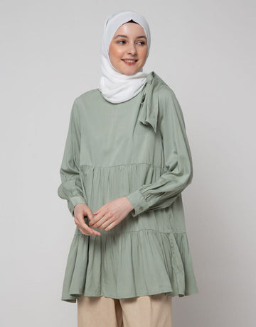 Annisa Long Sleeve Blouse High Neck Tiered Top