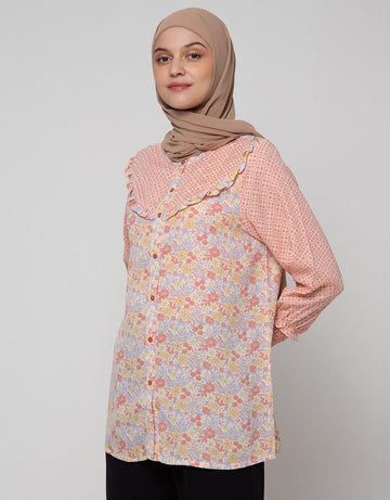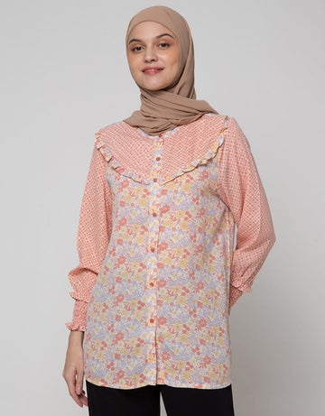 Annisa Long Sleeve Blouse Ruffle Bib Printed
