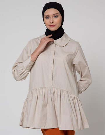 Annisa Long Sleeve Blouse Contrast Gather Bottom Panel