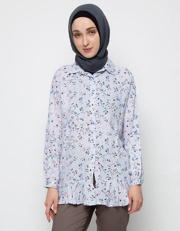 Annisa Long Sleeve Blouse Ruffle Bottom With Shanghai Collar