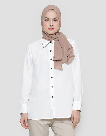 Annisa With Black List Detail Kemeja Lengan Panjang Wanita