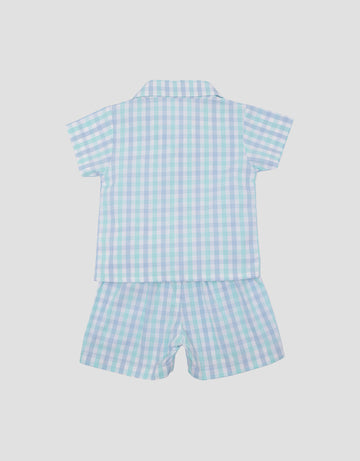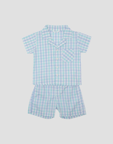 Little M Kotak Biru Summer Pakaian Setelan Anak Perempuan