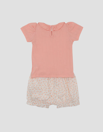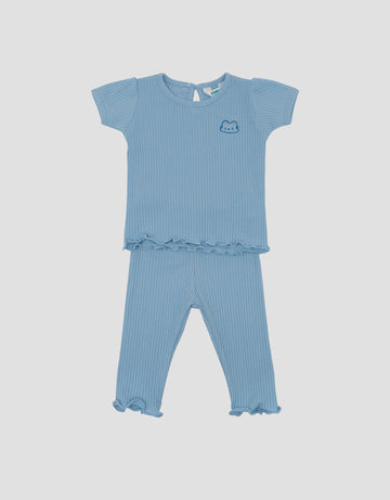Little M Textured Rib With Embro Pakaian Setelan Bayi