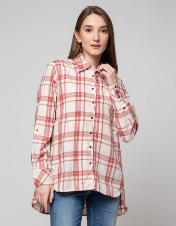Cardinal Girl Motif Kotak-Kotak Kemeja