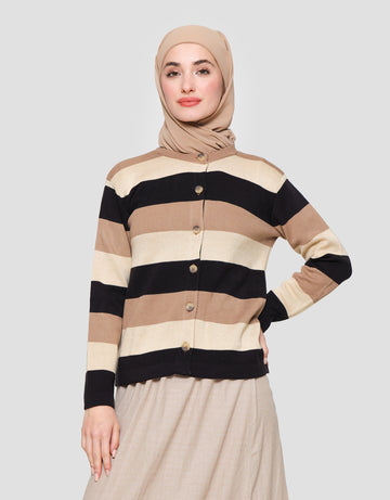 Connexion Top Lace Mix Stripe Kemeja Lengan Panjang Wanita