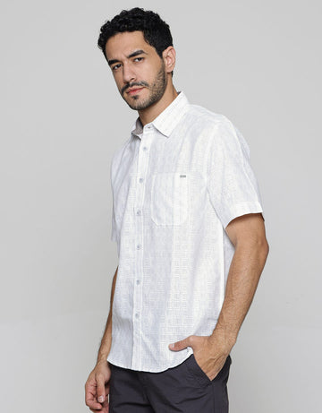 Watchout Casual Contrast Square Pattern Kemeja Lengan Pendek Pria