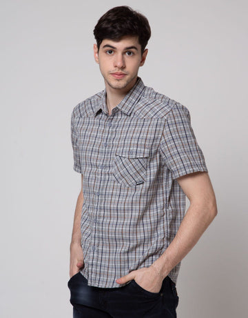 Watchout Jeans Short Sleeves Shirt Motif Kotak-Kotak