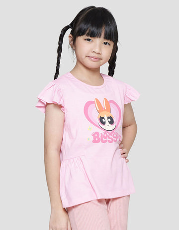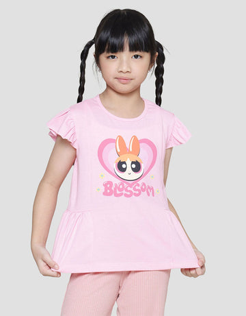 Character The Powerpuff Girls Lengan Serut Kaos Anak Perempuan