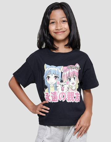 Nevada Boxy Anime And Cat Kaos Lengan Pendek Anak Perempuan