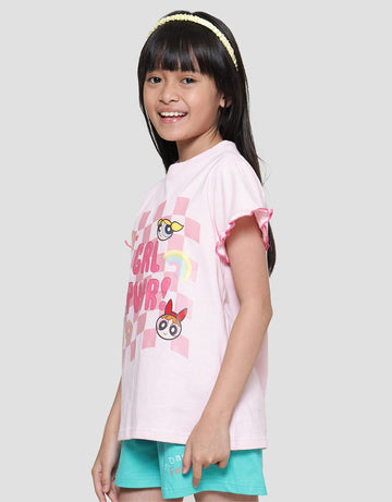 Character The Powerpuff Girls Texture Kaos Lengan Ruffle Anak Perempuan