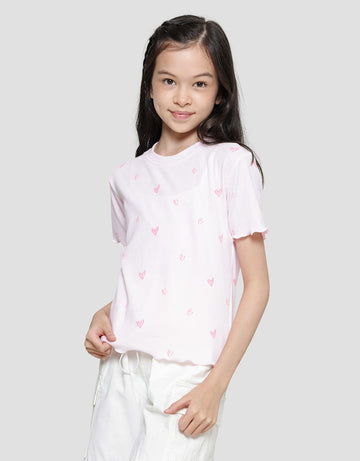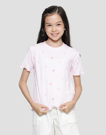 Nevada Rib Knit Fullprint Love Kaos Lengan Pendek Anak Perempuan