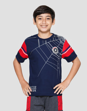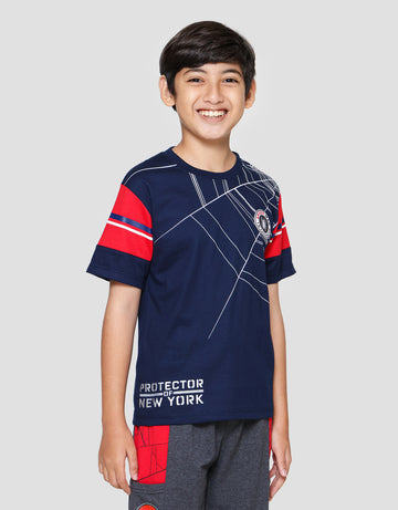 Marvel Spiderman Stripe Kepala Patch Kaos Lengan Pendek Anak Laki-laki