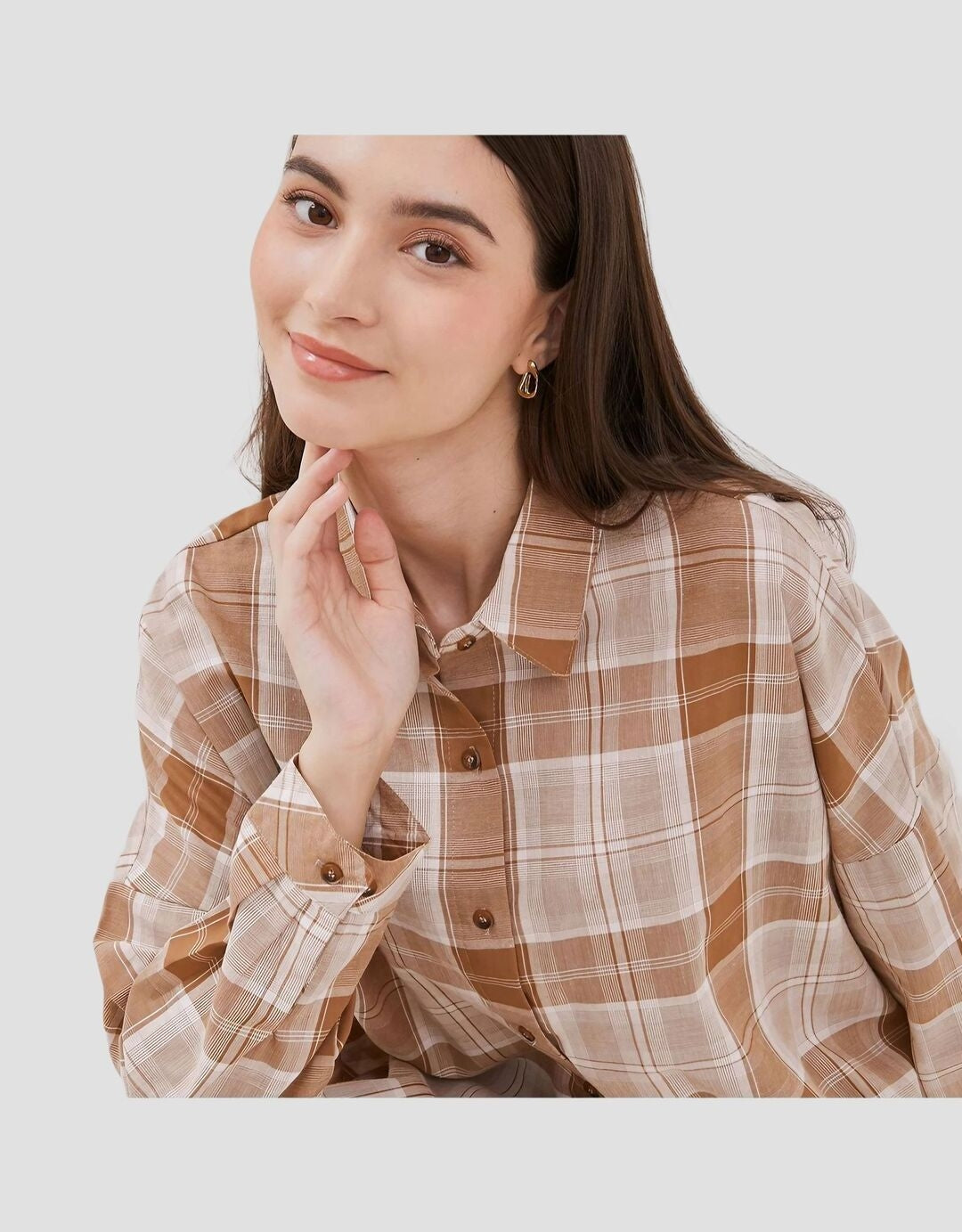 Graphis Kemeja Kancing Depan Kemeja Motif Kotak-Kotak Wanita