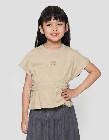 Little M Top Slub Karet Pinggang Kaos Anak Perempuan