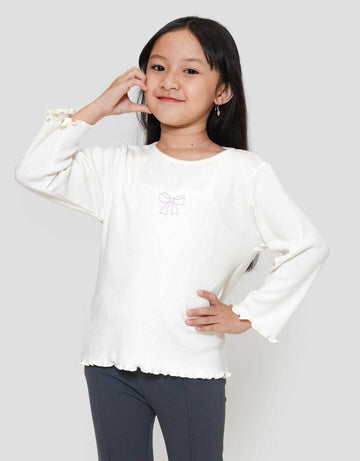 Little M Rib Bordir Bonjour Mon Ami Kaos Anak Perempuan