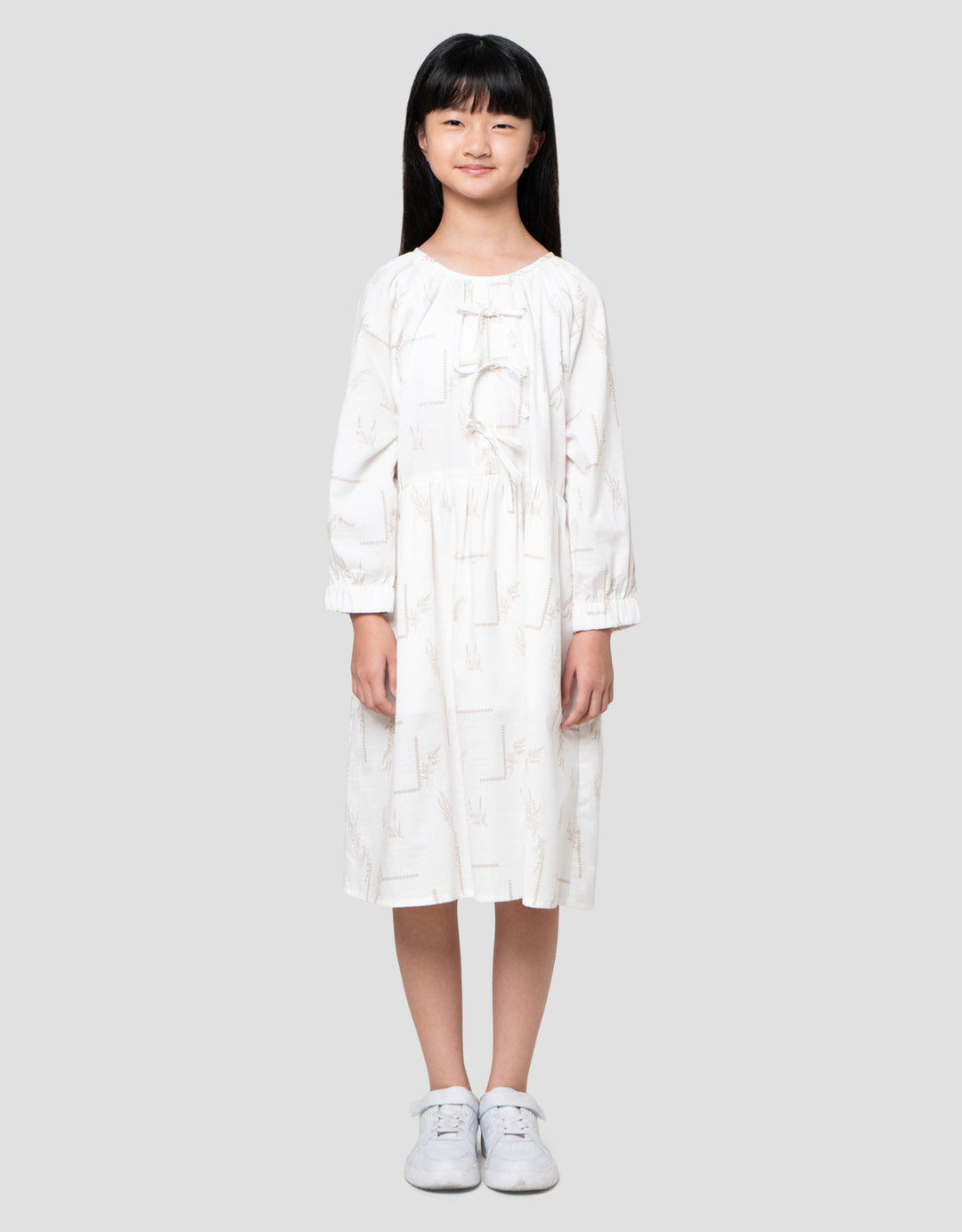 Nevada Sarimbit Print Daun With Zipper Midi Dress Anak Perempuan