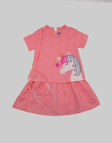 Little M Print Bunga With Cardigan Midi Dress Lengan Pendek Anak Perempuan