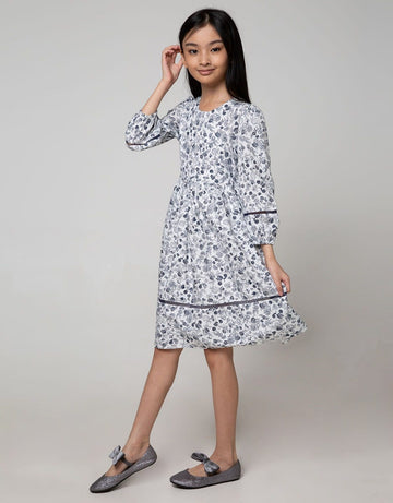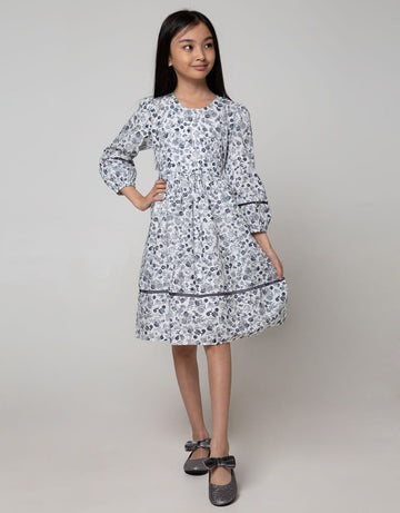 Kidz Too Long Sleeve Midi Dress Flower Daun Lace Tangan