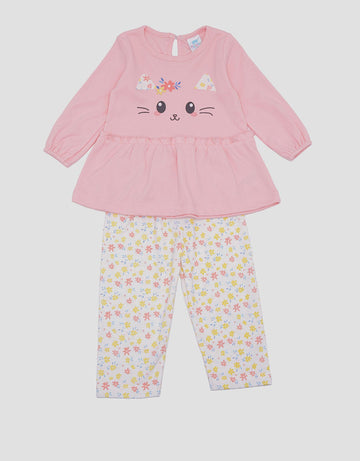 Pipiniko Icon Cat Flower Pakaian Set Anak Perempuan