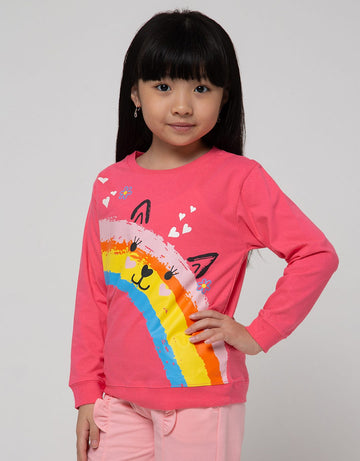 Little M Long Sleeve T-Shirt Rib Rainbow Bordir Animal