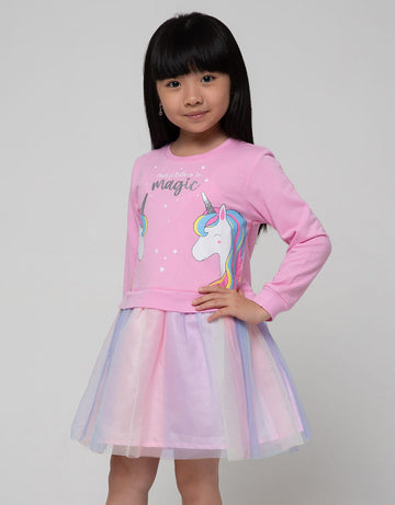 Little M Long Sleeve Midi Dress Tile Fantasy Land Unicorn