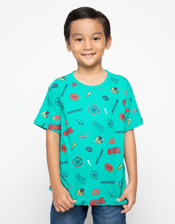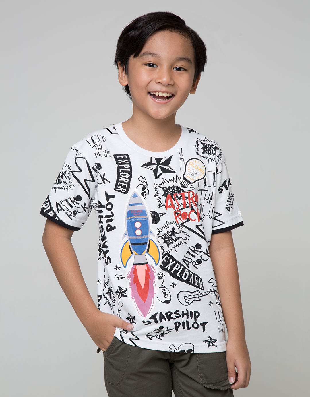 Little M Short Sleeve T-Shirt Fullprint Space Rocket Emboss Timbul
