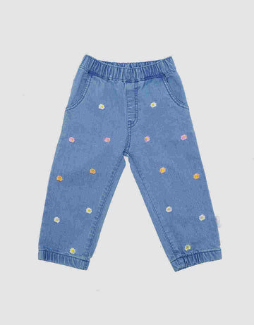 Pipiniko Bunga Bulat Celana Panjang Denim Anak Perempuan