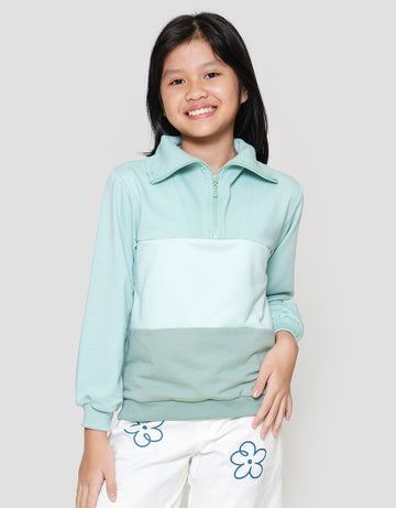 Nevada Gradasi Solid Zip Up Collar Sweater Anak Perempuan