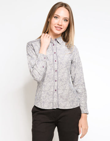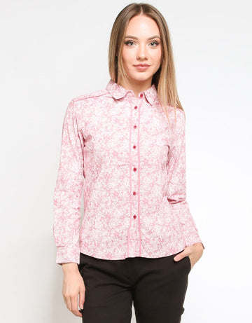 Logo Jeans Kemeja Lengan Panjang Print Plaid Floral