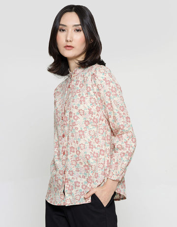 Expand Yooki Up Collar Floral Blouse Wanita