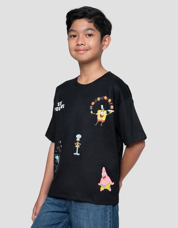 Character Spongebob Stay Positive Kaos Anak Laki-laki