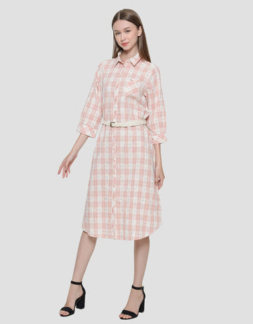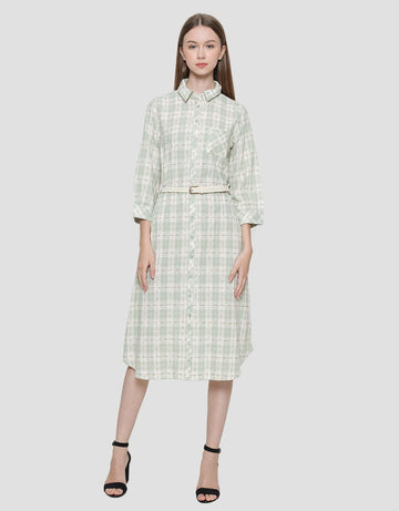 Triset Ladies Plaid With Belt Dress Wanita