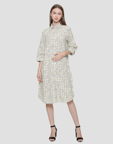 Triset Ladies Motif Kotak-Kotak Dress Wanita