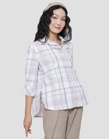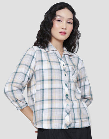 Triset Casual Check Print Blouse Wanita