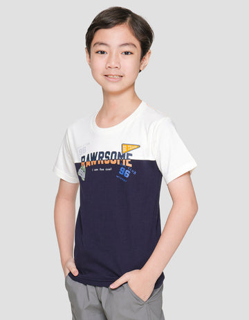 Little M Color Block Sleeve Embro Dino Kaos Anak Laki-Laki