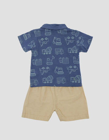 Little M Polo Print Tractor Pakaian Setelan Bayi