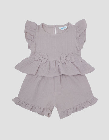 Little M Woven Textured With Bow Pakaian Setelan Bayi