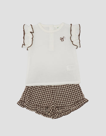 Little M Woven Rami And Yarndyed With Embro Pakaian Setelan Bayi