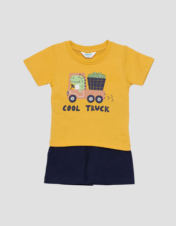 Little M Fullprint Stripe Car Setelan Anak Laki-laki