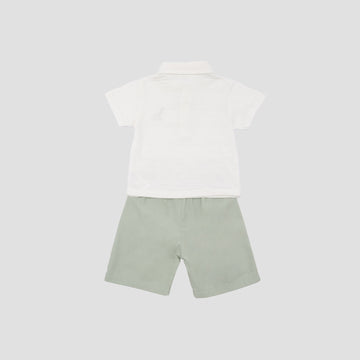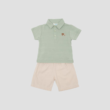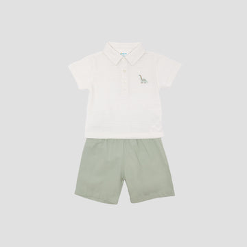 Little M Polo Short Woven Embro Dino Pakaian Setelan Bayi