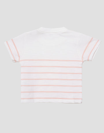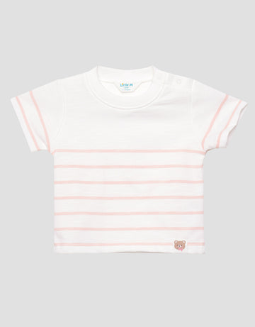 Little M Stripe Patch Bear Kaos Lengan Pendek Anak Perempuan